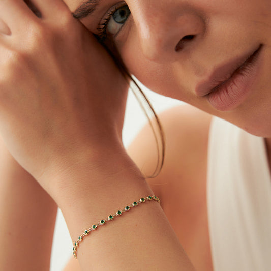 14k Bezel Set Emerald Tennis Bracelet