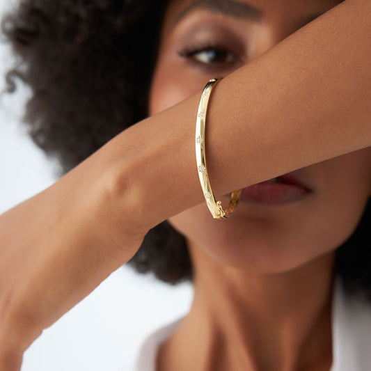 14k 4mm Dome Star Setting Diamond Bangle Bracelet