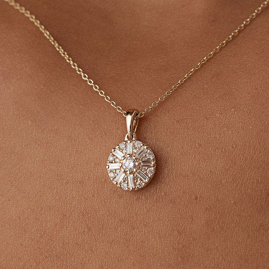 14k Baguette Diamond and Round Diamond Cluster Necklace
