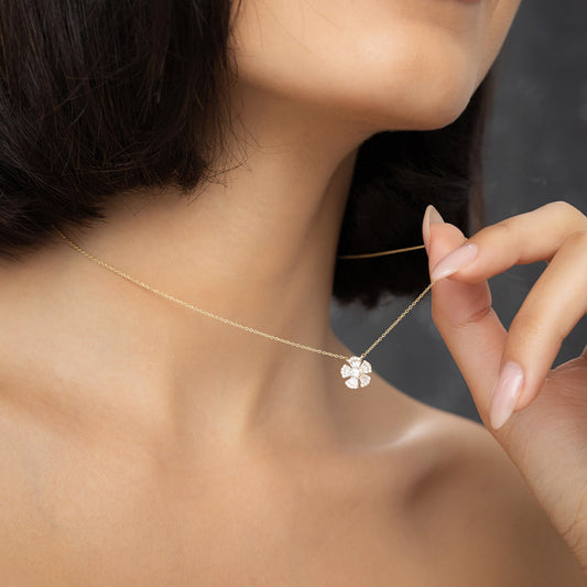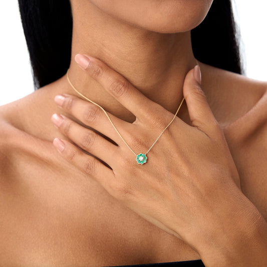 14K Bezel Setting Emerald Flower Diamond Necklace
