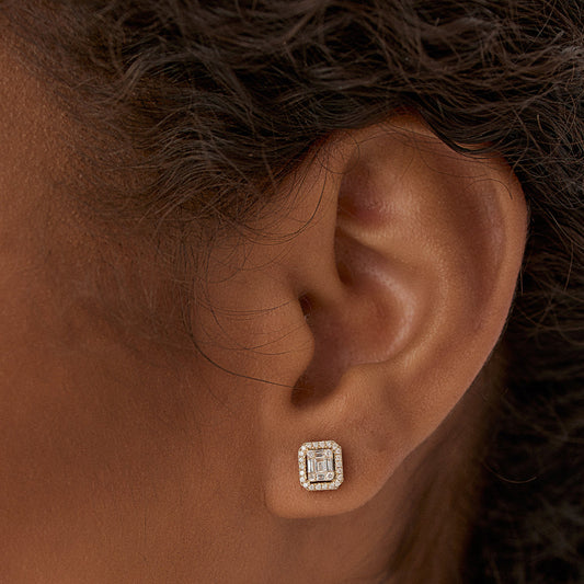 14k Baguette and Round Brilliant Micro Pave Statement Bangle Bracelet