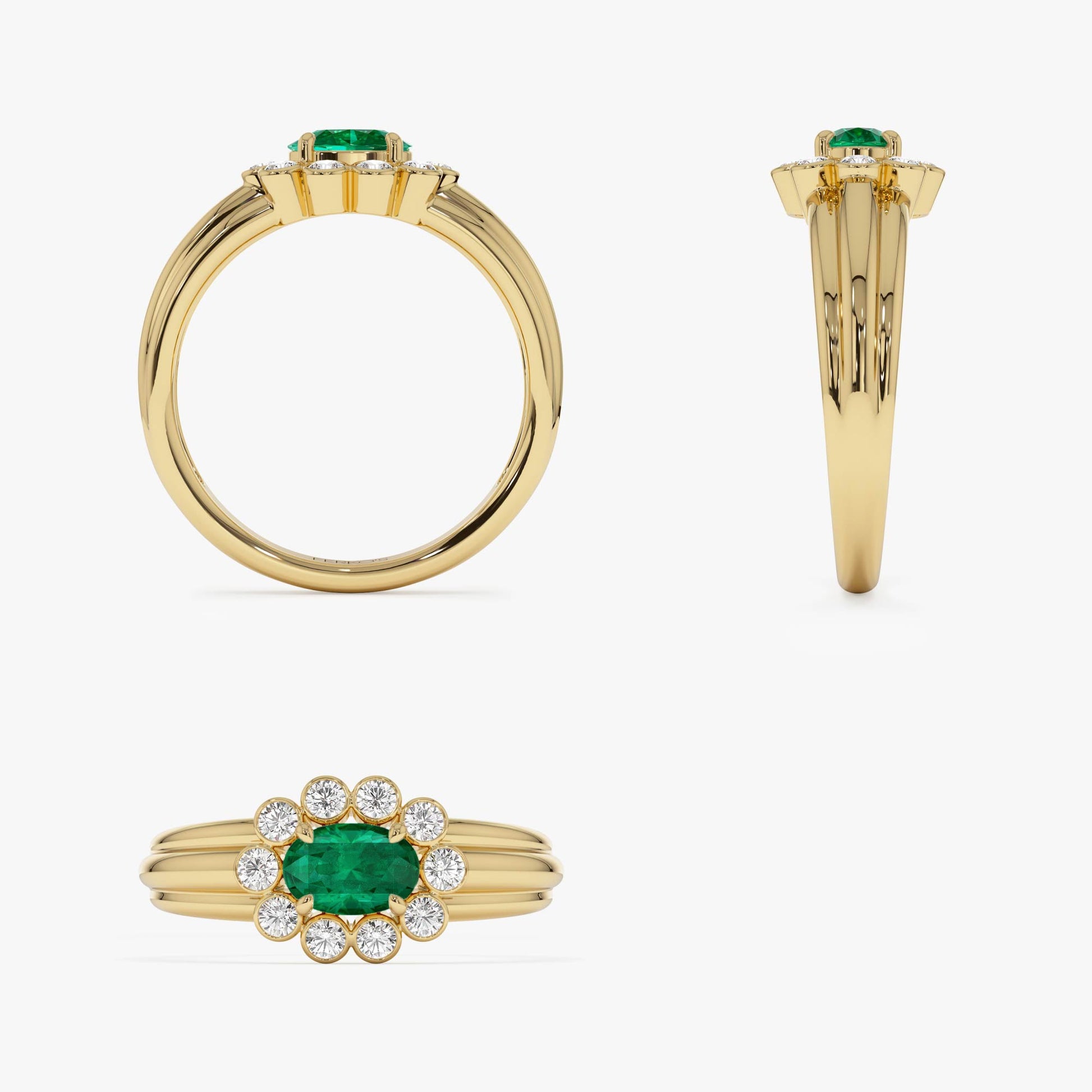 14k Oval Shaped Emerald with Bezel Hale Setting Ring
